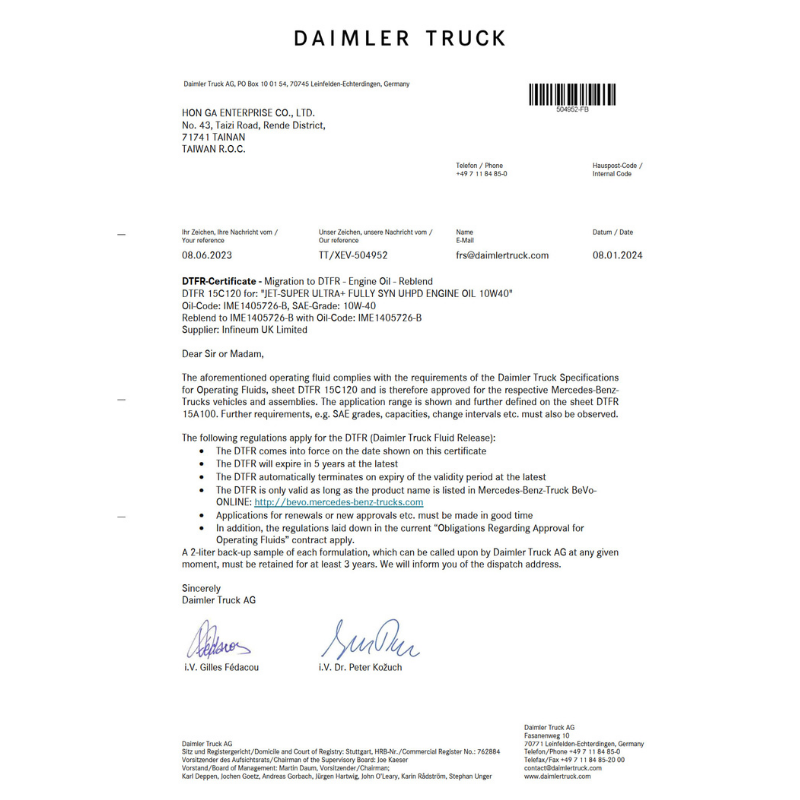 ULTRA PLUS FULLY SYN ENGINE OIL 10W40 CK-4 is a premium quality heavy duty diesel engine oil formulated with premium base oil and additives technology. It’s specifically developed to meet Euro VI emission standards. The latest Low SAPS technology allows it fully compatible with Euro VI and earlier exhaust after-treatment systems. It extends oil change intervals, even under severe operating conditions. High viscosity index provides excellent low temperature fluidity and sufficient oil film in hot climates. It meets various leading European and American OEM’s, such as Mercedes-Benz, MAN, Volvo, Renault, DAF, etc.